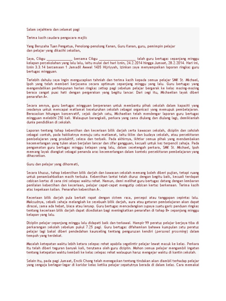 Ucapan Guru Bertugas Mingguan Kali Ke 1 2014 Pdf